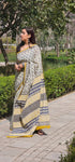 Beige Yellow Handblock Mul Cotton Saree
