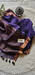 Purple Pure Handwoven Linen saree with Zari strips