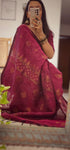 Wine pure handwoven linen saree with zari booti design